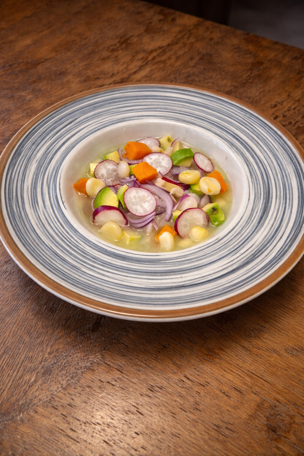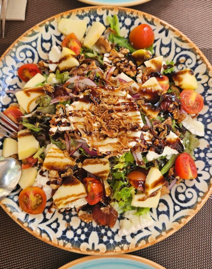 Con idiazábal y pipirrana de almendra garrapiñada.