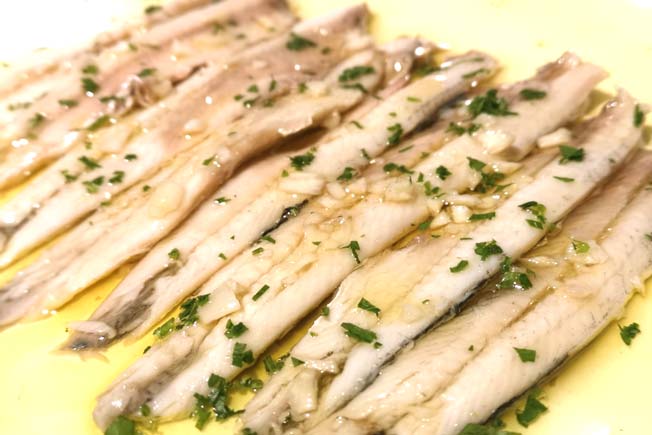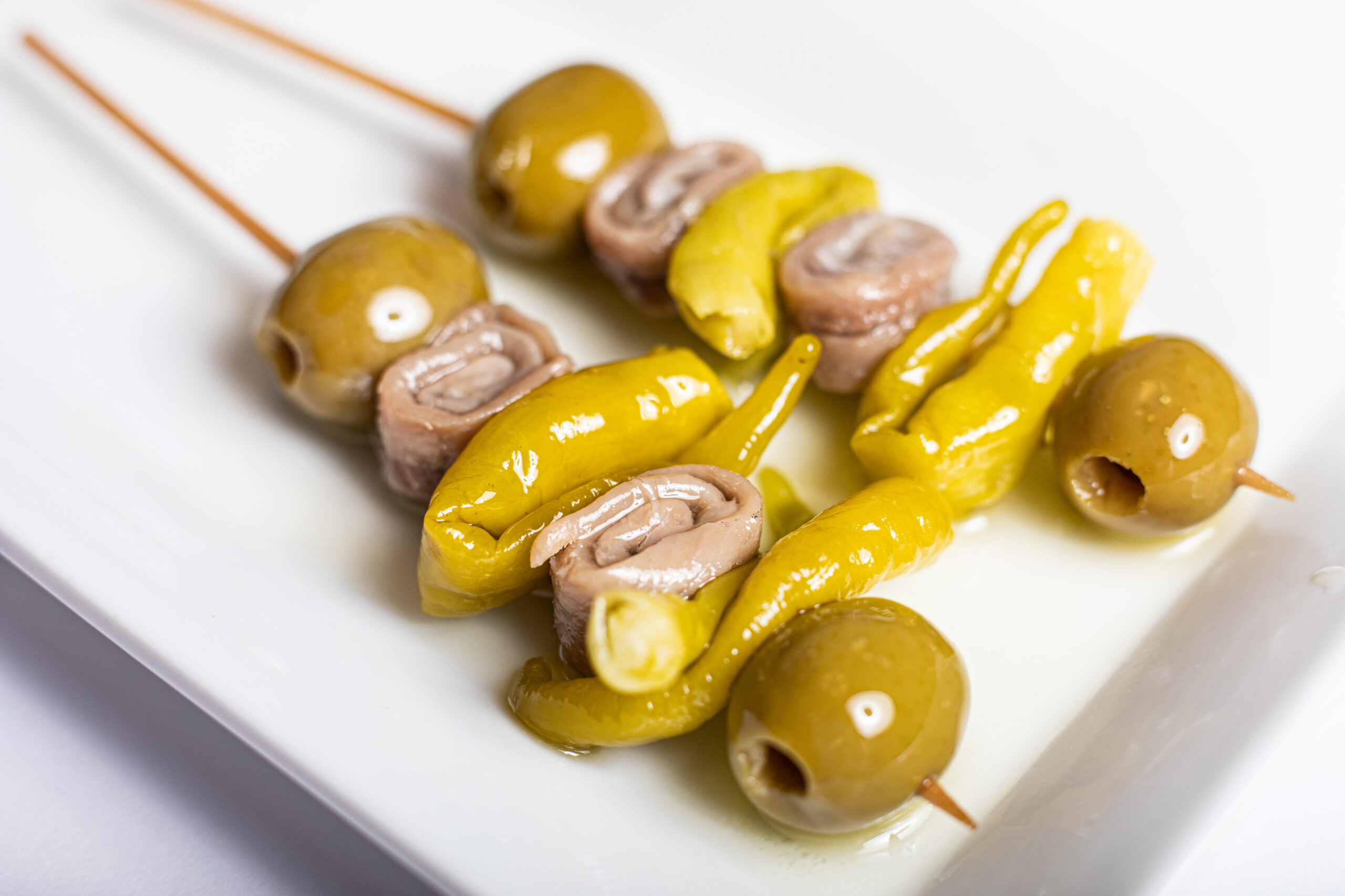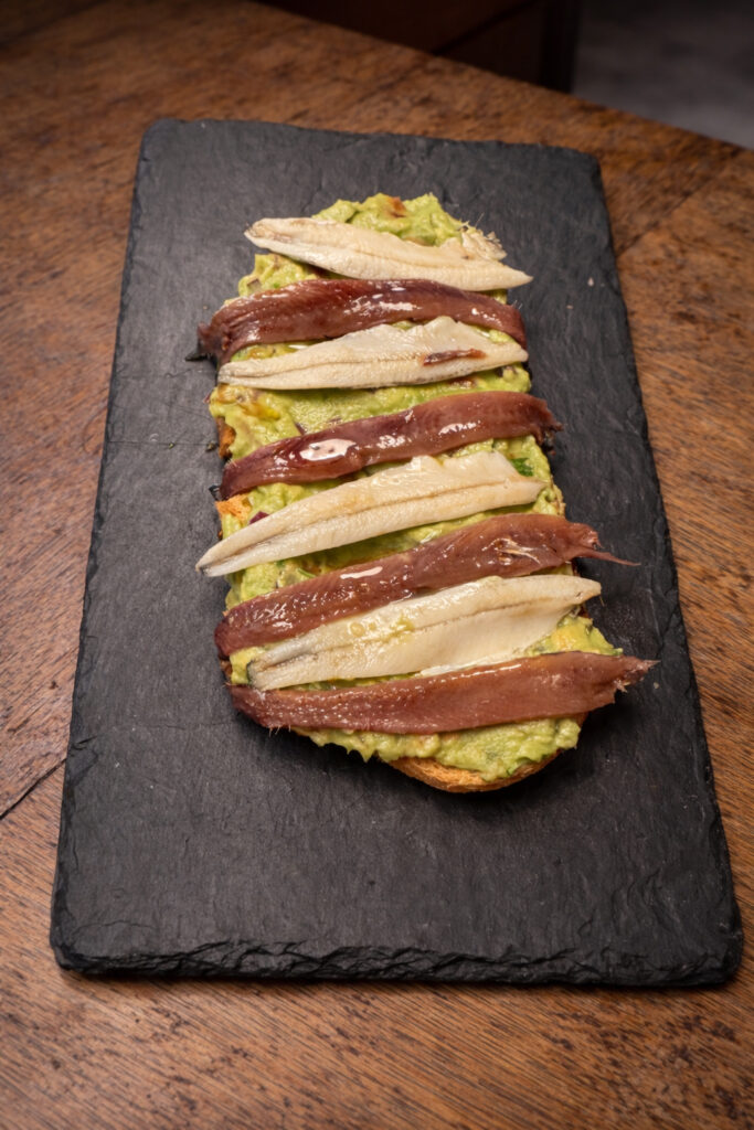 Tostas de sardina ahumada con pimientos rojos y piparras (4 uds)