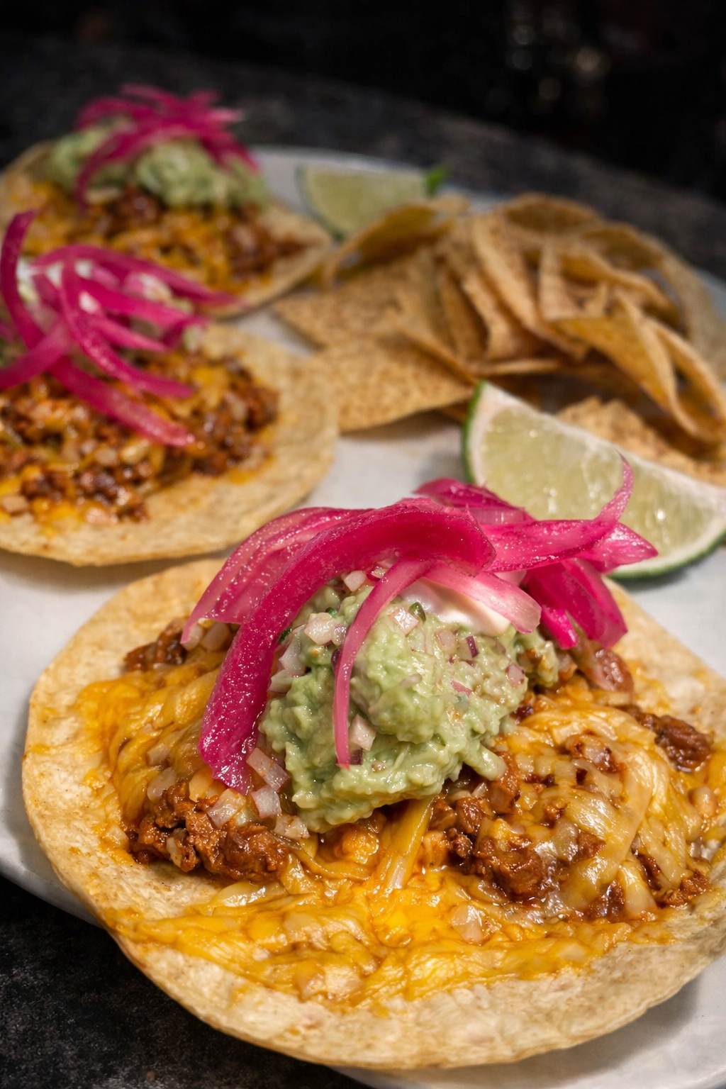 Tacos mexicanos de cochinita pibil con guacamole y salsa agria