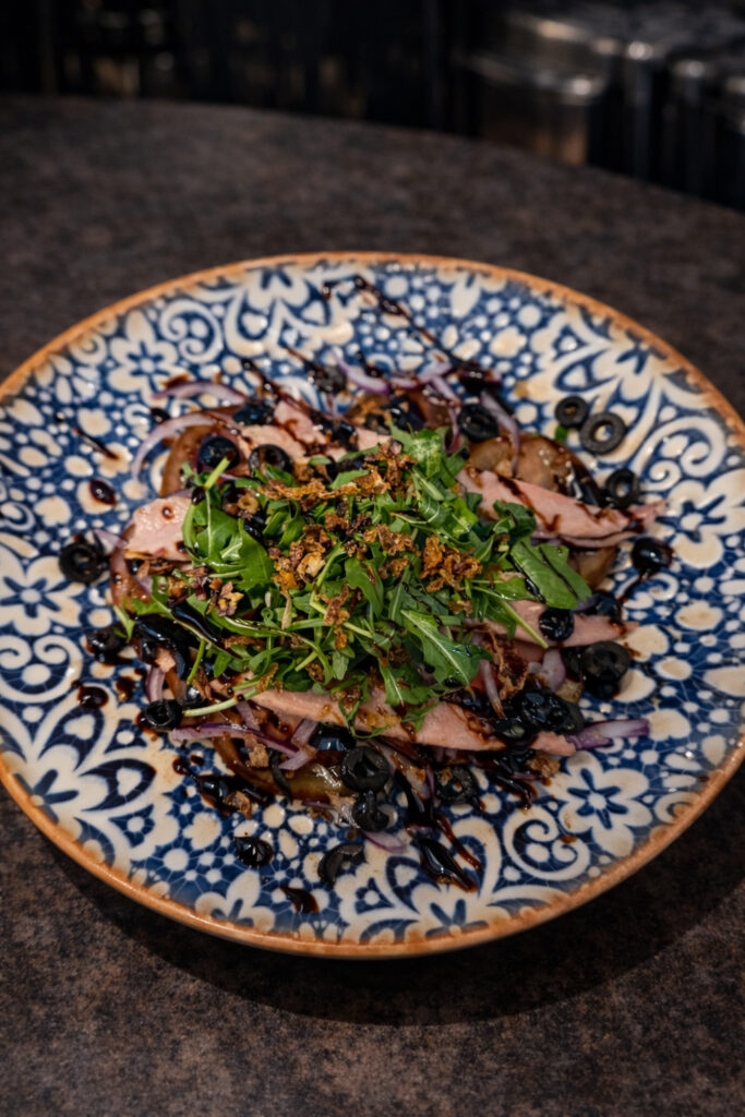 Tomate de temporada con ventresca de bonito y cebolla morada
